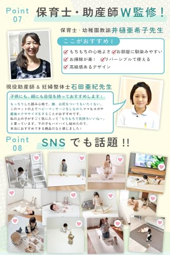 popomi もちもち プレイマットは、妊婦整体師および保育士が監修しているため、子どもの成長に配慮した安全性と使い勝手を追求しています。