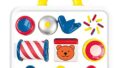 - セット内容は「ツイン・ラトル」「ハンプティダンプティローラー」「トランペット」「ロックブロック」の計4点で、6ヶ月頃から楽しめます