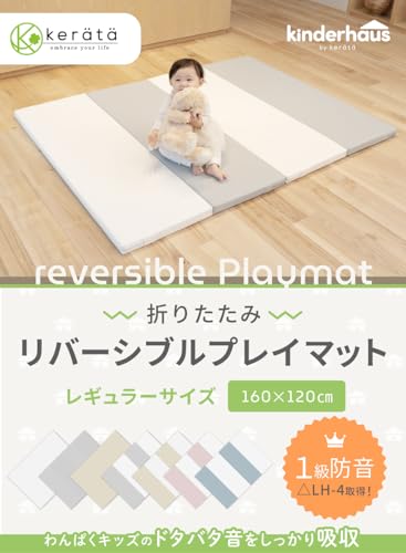 (ケラッタ) プレイマット 折りたたみ リバーシブル 赤ちゃん 1級防音 防水 厚手 (ベージュ,160×120cm) 1枚目 画像
