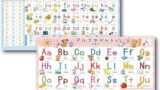 この4枚セットはひらがな、カタカナ、アルファベット、さらに数字や色、曜日、動物などの基本常識を1枚でカバー。