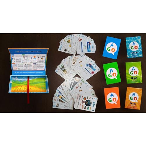 AGO Q&A 3レベル ボックスセットは、英語の質問と返答を中心にしたカードゲームで、幼児から大人まで幅広い年齢層に向いています。