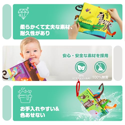 洗える布絵本は水洗いができ、BPAフリーのポリエステル製で毒性もありません。