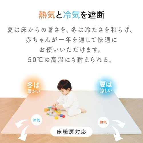 衝撃吸収力と抗菌性を備え、日常のケアも簡単なこのマットは、安全で快適な育児空間を作る有効なアイテムです。