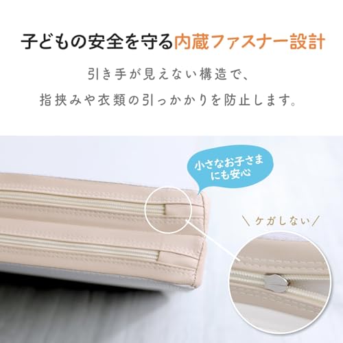 PUレザー素材を使用しているため、ジュースや食べこぼしなどの汚れもサッと拭き取れて、お手入れが簡単なのも忙しい育児中に嬉しいポイントです。