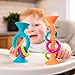 ピップスクイグズはシリコン製でやわらかく、リングや吸盤を引っ張ったり、くっつけたり外したりする動作が楽しく、感覚遊びに最適です。