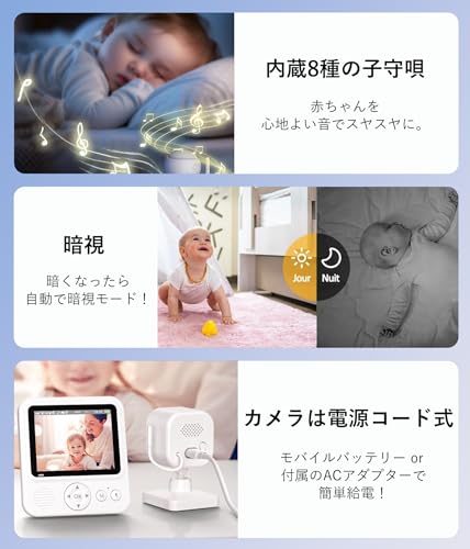 VOXモードによる省エネ設計と温度管理が赤ちゃんの安全を助け、双方向通話機能は離れていても安心感をもたらします。 - デメリット:Wi-Fi連携やスマホアプリを利用した高機能モデルに比べ、多機能性は限定的です。